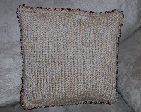 And here is my beaded pillow. I used Homespun yarn in the Tunisian knit stitch. Normally, I hate Homespun yarn because I find it difficult to crochet with. But in Tunisian it was a piece of cake. Good to know because I have a considerable stash of Homespun and wasn't sure what to do with it. :P This pillow is for my Mom! Oh, and you really can't tell the difference between a knitted swatch and a Tunisian knitted swatch. So cool! I've been wanting to learn to knit, and now I don't have to. :)